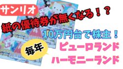 株主優待 【サンリオ】10万円台で株主 毎年ピューロ♪1名義で2人で行く方法も。電子チケット化で紙の優待券は無くなります!※26年4月以降