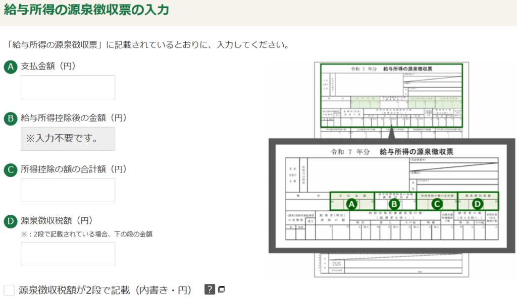 源泉徴収票通りに入力していく