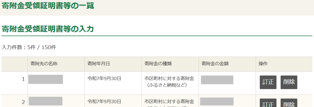 ふるさと納税などの寄附をした方はここで修正