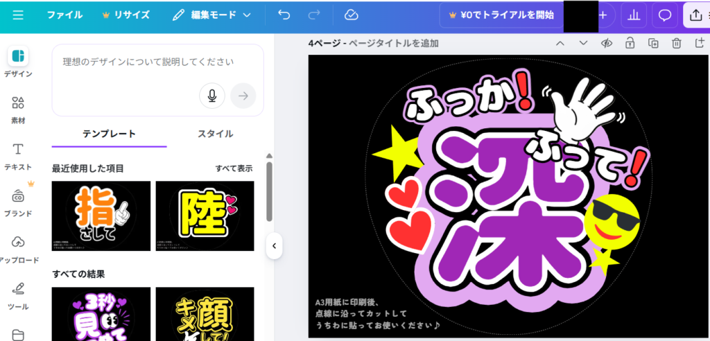 後はコンビニで印刷して、切って、両面テープでうちわに貼るだけ。