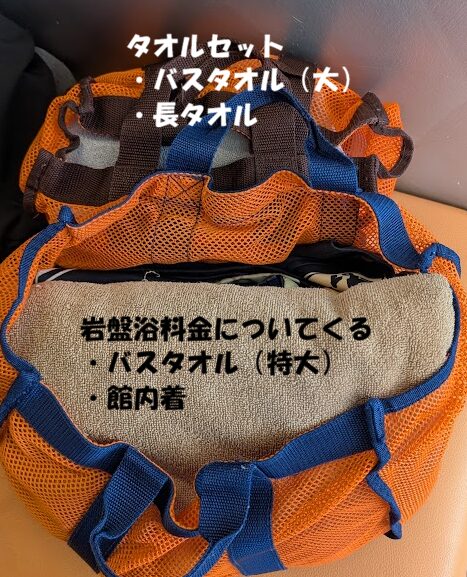 岩盤浴料金を追加している場合は岩盤浴用のバスタオルと館内着も付いてきます。